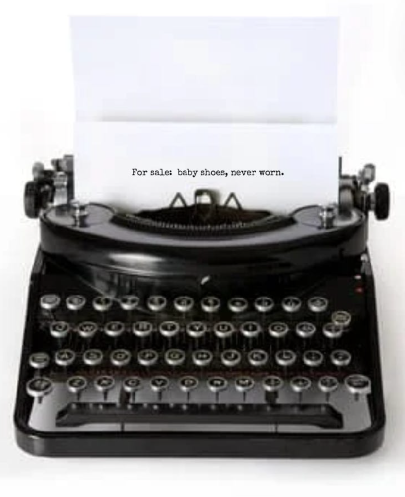 The famous six word story — “For sale: baby shoes, never worn.” — has taken on a life far beyond literature. Whether or not Ernest Hemingway actually wrote it, the story has become a cultural shorthand for powerful, minimalist storytelling.